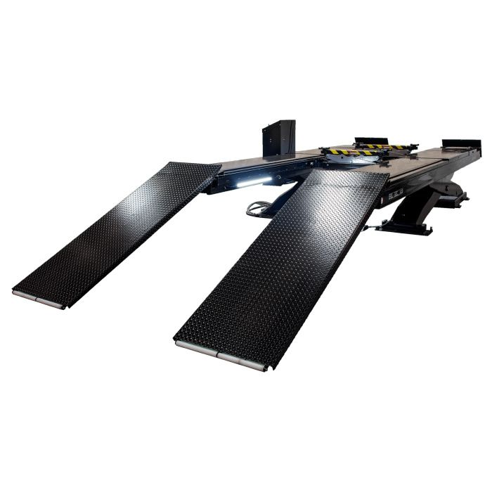 The Challenger Lifts SX14 Series Scissor Alignment Lifts are easy to operate, provide increased accessibility to alignment adjustment areas and are easy to load. Space saving design allows more scissor lifts to fit into the same operating space as 4-post lifts. Adjustable turnplate pockets allow for a wider range of wheelbase alignments. The SX14 features include LED lighting, extra wide runways, single point air actuated lock release, single locking point rear slip plates, photo cell to ensure runway synchronization, approach ramp rollers, and drive-on and off runway design. The SX14 is available flush mount, surface mount, and surface mount with extended ramps for low clearance vehicles. The SX14 is ALI and ETL Certified.