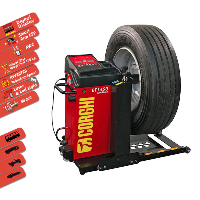 The Corghi ET1450 Truckline Wheel Balancer is a universal compact wheel balancer for truck, bus, and car wheels. Suitable for mobile service, workshops and garages with limited space, the ET1450 is particularly suitable for whose who need compact and professional equipment without sacrificing the most evolved technical solutions for professionals in the field.