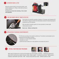 Smart system for automatic acquisition of distance, 28" diameter, with integrated FSP (Fast Selection Program) function that automatically activates the balancing programs avoiding the use of the keyboard.AWC (Auto Width Calculation) system for virtual calculation of wheel width without physical sensors. Easy to use - Reduces working time.