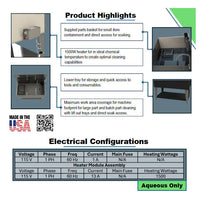 - 1500W heater for in ideal chemical temperature to create optimal cleaning capabilities