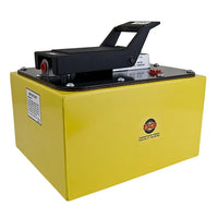 The ESCO #10518 Pro Series ½ Gallon Hydraulic Air Pump is specifically designed for automotive, light truck, and heavy-duty applications. This pump is constructed with the user in mind, as a compact lightweight air hydraulic pump solution that delivers a powerful punch; requiring only 80 PSI for 10,000 PSI of operating hydraulic pressure to power even the heaviest of cylinders, ram, bead breakers, and more. Built-in exhaust muffler promotes safer, quieter operation along with a robust foot pedal providing hand-free pumping and release of load. Manufactured with the highest quality parts and components designed to withstand rigorous use in any environment. All ESCO air hydraulic pumps are designed with fully serviceable pump motors, allowing for economical repairs and maintenance. The aluminum reservoir is lightweight and durable for field, shop, and mobile applications.