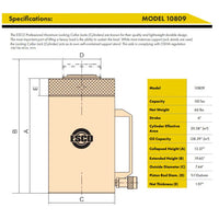 The ESCO Professional Aluminum Locking Collar Jacks (Cylinders) are known for their quality and lightweight durable design. The most important part of lifting a heavy load is the ability to sustain the load. While most instances support jack stands are used; the Locking Collar Jack (Cylinder) acts as its own self-contained support stand. This aids in complying with OSHA regulation 29CFR1926.305.The ESCO 10808 50-Ton Safety Locking Collar Jack is designed for use in multiple heavy lifting applications including OTR/mining vehicle lifting.