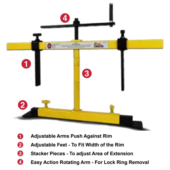 - Pushes And Holds Rim Flange/Tire Back For Easy O-Ring/Lock Ring Installation