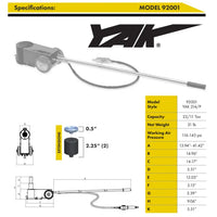 The ESCO 92001 Yak 11-22 Ton Portable Air Hydraulic Jack is designed to be portable, easy to use, and compact in design. With a removable handle and 100% portable carrying case this jack is incredibly portable. Jack lifting capacity to handle up to 22 Tons. With a minimum height of 5.51" and a maximum height of 12.05" (with out extensions), this jack is perfect for any service bay or truck.