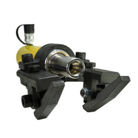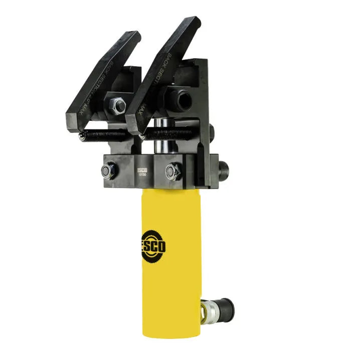 The ESC3000 OTR Giant Tire Bead Breaker is designed for use on large 5-piece rims 49" to 63" with pry bar/bead loosening pockets. This tool's unique design aids in safely operating on a wide range of large OTR style tire/wheel configurations, including Rimex and Topy style OE Wheels. Fitted with long adjustable safety clamping jaws, allows for the bead breaker to break the bead, while maintaining clamping pressure on the wheel face, eliminating potential kick-off of the tool while breaking the bead. All ESCO Pro-Series hydraulic bead breakers are powered by heavy-duty rams/cylinders, capable of breaking the toughest of beads using any ESCO 10,000 PSI hydraulic pumps.