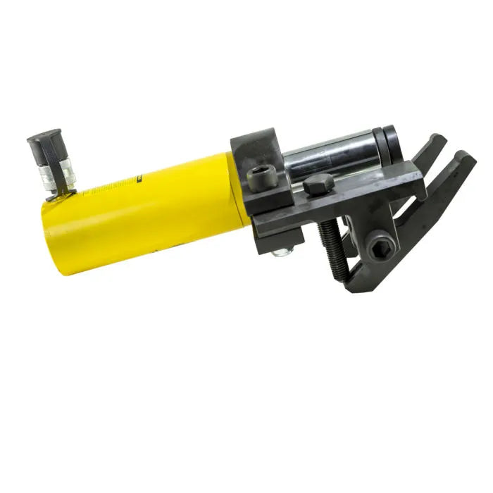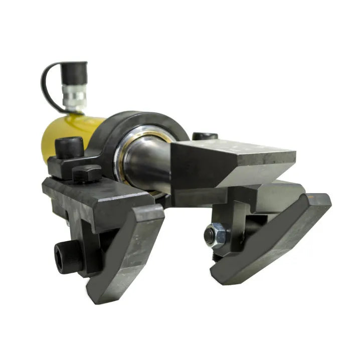 The ESC3000 OTR Giant Tire Bead Breaker is designed for use on large 5-piece rims 49" to 63" with pry bar/bead loosening pockets. This tool's unique design aids in safely operating on a wide range of large OTR style tire/wheel configurations, including Rimex and Topy style OE Wheels. Fitted with long adjustable safety clamping jaws, allows for the bead breaker to break the bead, while maintaining clamping pressure on the wheel face, eliminating potential kick-off of the tool while breaking the bead. All ESCO Pro-Series hydraulic bead breakers are powered by heavy-duty rams/cylinders, capable of breaking the toughest of beads using any ESCO 10,000 PSI hydraulic pumps. This tool is the kit version of the ESC3000 OTR Giant Tire Bead Breaker #10144 which includes: #10144-SPADE & #10144-SPADE-XL.