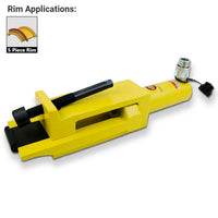 The ESCO #10105 Giant Tire Bead Breaker Tool features a smaller more compact design that fits on the backside of most wheels and is for use on 5-piece rims 25" and 29" earthmover tire/wheels with pry bar/bead loosening pocket. This giant tire bead breaking tool has a 10-ton hydraulic ram with 2" (55mm) stroke and when used with a 10,000 PSI air/hydraulic pump can easily break most earthmover tire beads.