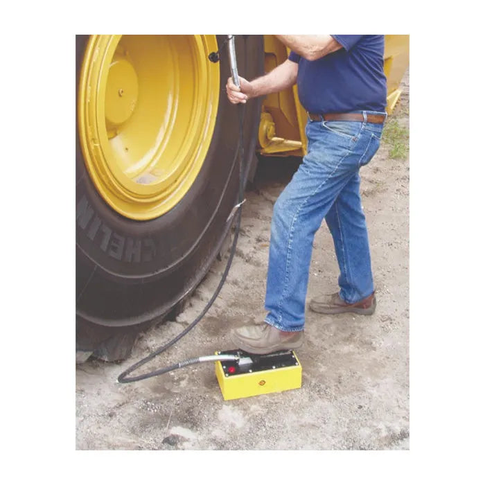 The ESCO #10518 Pro Series ½ Gallon Hydraulic Air Pump is specifically designed for automotive, light truck, and heavy-duty applications. This pump is constructed with the user in mind, as a compact lightweight air hydraulic pump solution that delivers a powerful punch; requiring only 80 PSI for 10,000 PSI of operating hydraulic pressure to power even the heaviest of cylinders, ram, bead breakers, and more. Built-in exhaust muffler promotes safer, quieter operation along with a robust foot pedal providing hand-free pumping and release of load. Manufactured with the highest quality parts and components designed to withstand rigorous use in any environment. All ESCO air hydraulic pumps are designed with fully serviceable pump motors, allowing for economical repairs and maintenance. The aluminum reservoir is lightweight and durable for field, shop, and mobile applications.