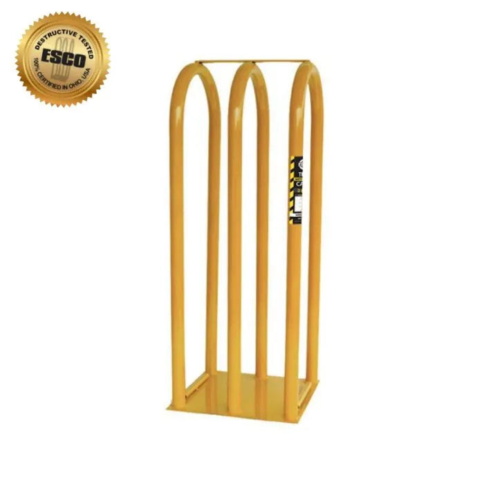 The ESCO 3 Bar Tire Inflation Cage is used when changing and inflating tires on trucks, tractors, buses, and many other heavy duty vehicles. This safety cage is constructed from heavy-gauge steel tubing welded to a steel base and helps protect against tire explosions during inflation and deflation. The 90409 is designed to meet OSHA regulation requirements and accommodates medium, heavy-duty truck OTR, tractor, and super single tires up to 54" OD x 20" W. A tire inflation safety cage is a must for any shop working with tubeless and multi-piece rims.Heavy duty tire inflation cages manufactured using steel that meets the toughest standards. These safety cages, a mandatory precaution for tire inflation, provide good protection and exceed the requirements of OSHA Standard 29 CFR 1910.177 in the U.S. Before using the portable inflation cage, please read the Safety Instructions carefully.