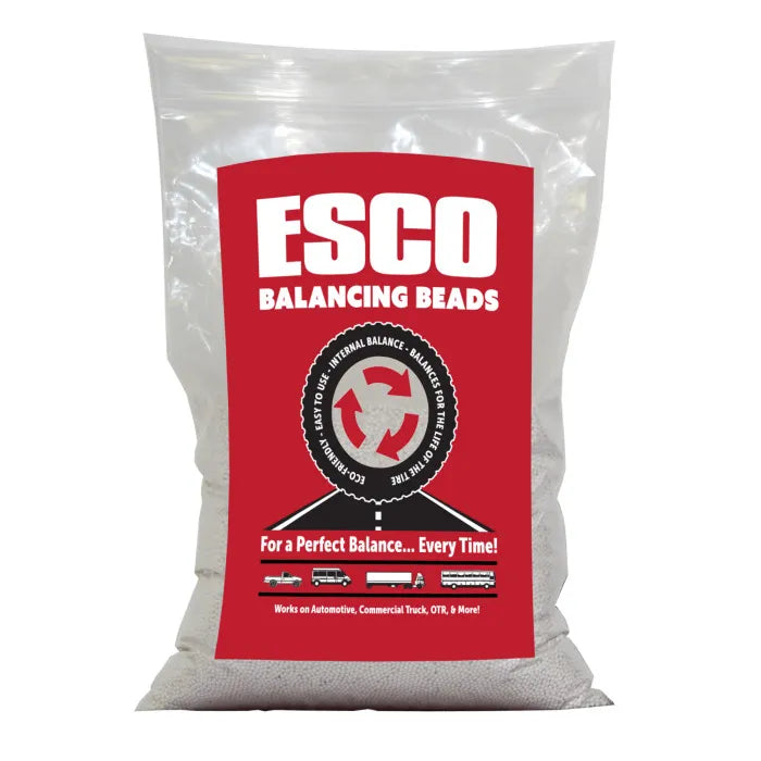 ESCO Balancing Beads consist of thousands of uniquely designed beads that will automatically adjust to the imbalance of the tire based on the principle of centrifugal force. The ESCO Balancing Beads naturally find the unbalanced side of the tire and gathers together to create a counter-weight that balances the tire regardless of changes in the tire weight due to normal conditions. Beads disburse into the tire and internally balance the tire for the life of the tire using centrifugal force. Beads will not clump or block valve stem like other internal balancing mediums. Beads will maintain same size and quantity inside of tire for life of tire.