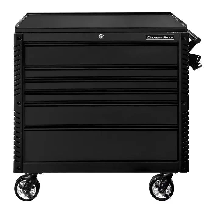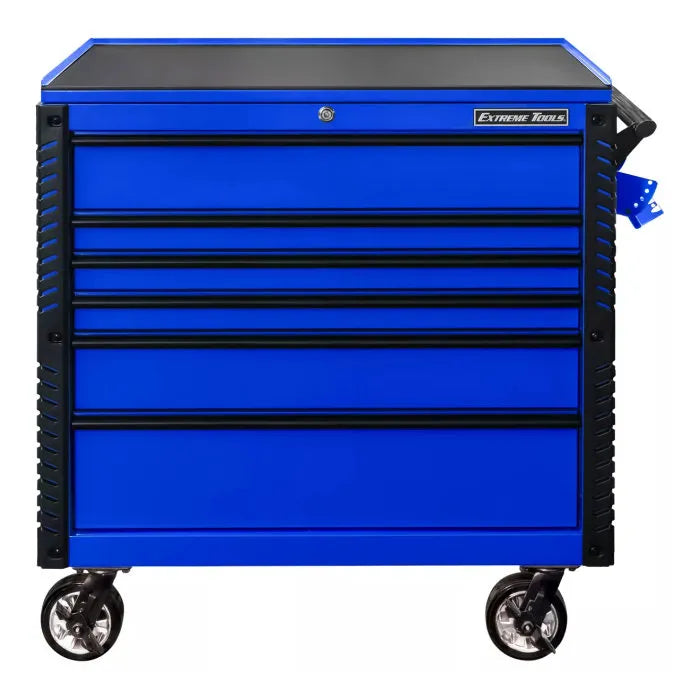 The Extreme Tools EX Professional Series 41 inch 6 Drawer Tool Cart is the answer to every mechanic's wish list. Sure to become a favorite in your workspace, it has a unique design with all kinds of exclusive features you'll come to rely on - from the bonus power tool rack to the robust impact-resistant corner bumpers.