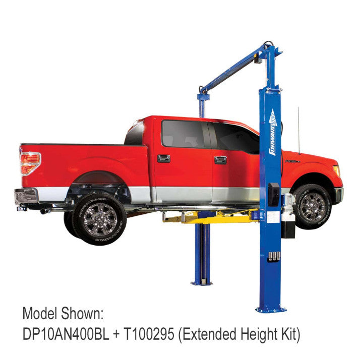 The Forward Lift T100295 Column Extension Kit is used to add an additional 2 feet (609.6 mm) to the top of the standard lift. This kit includes an extended length hose, return line, and cables to accommodate the extended height. Existing hardware included with the lift is used to attach the extensions.For Use With Forward Lift 10,000 lbs. Two Post Lift Models