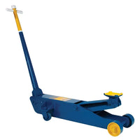The Hein-Werner HW93660 10-Ton Long Chassis Service Jack is ideal for lifting trucks, trailers and buses by the axle, differential or frame. Handle adjusts to three pumping positions and the long chassis provides accessibility to hard to reach points. Dual piston action provides speed to contact and power to lift. Long chassis makes it easy to access the hard to reach points. The handle adjusts to three pumping positions and the T-handle with release knob allows for exact positioning of load. Sealed hydraulic unit keeps out dirt, grime, grit and moisture for longevity. Features cast lift arm for heavy loads. This premium quality floor jack is Made In USA.