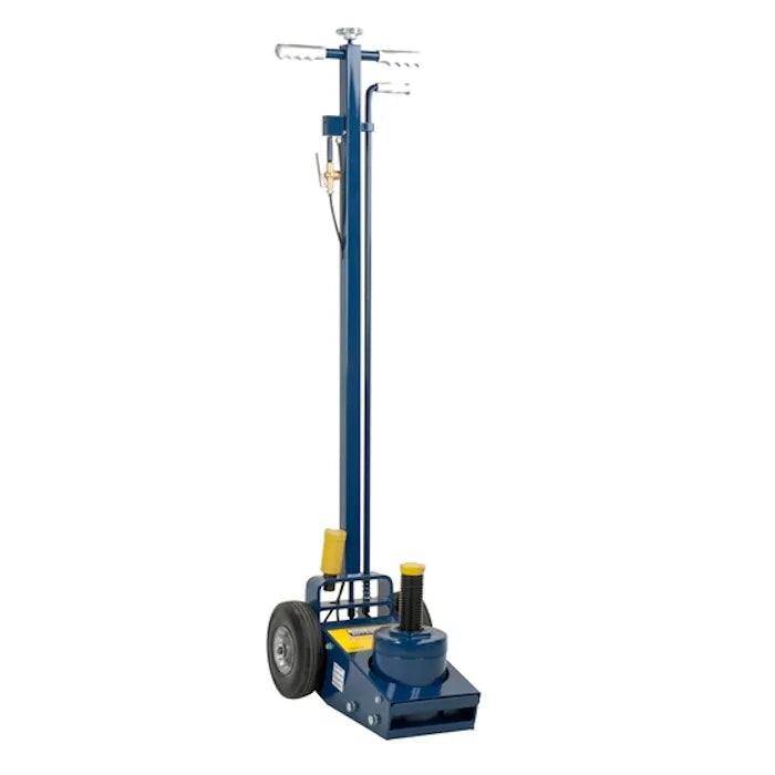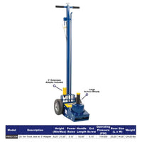 The Hein-Werner HW93735A 25-Ton Air Truck Axle Jack with 3" Extension is a compact and powerful professional air hydraulic truck jack with a specially a coated ram to prevent rust and extend the life of the jack. Features include low minimum height, rapid two-speed air hydraulic lifting action, air-power ram retraction, large 8" rubber wheels, pressure safety relief valve, and comes with 3" extension. This premium quality air hydraulic truck jack is Made In USA.