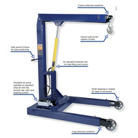 Hein-Werner engine cranes are Made in the USA for the needs of professional technicians; with thoughtful labor saving features like adjustable legs and booms and convenient air operation these are built for a lifetime of worry free service.