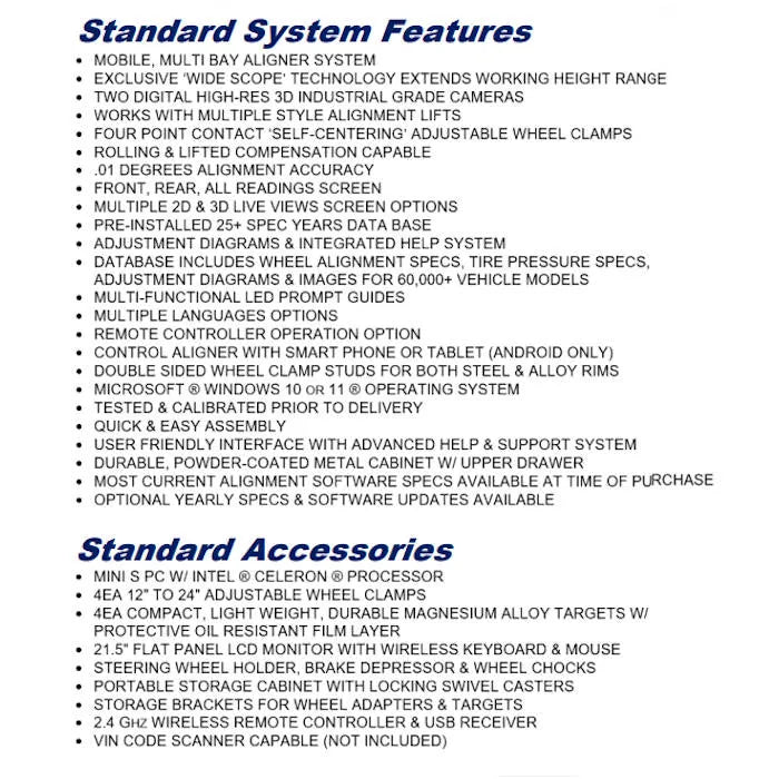 - Most Current Alignment Software Specs Available At Time Of Purchase