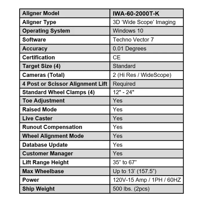 iDEAL IWA-60-2000T-K 3D iPro Image Wheel Aligner