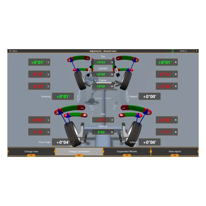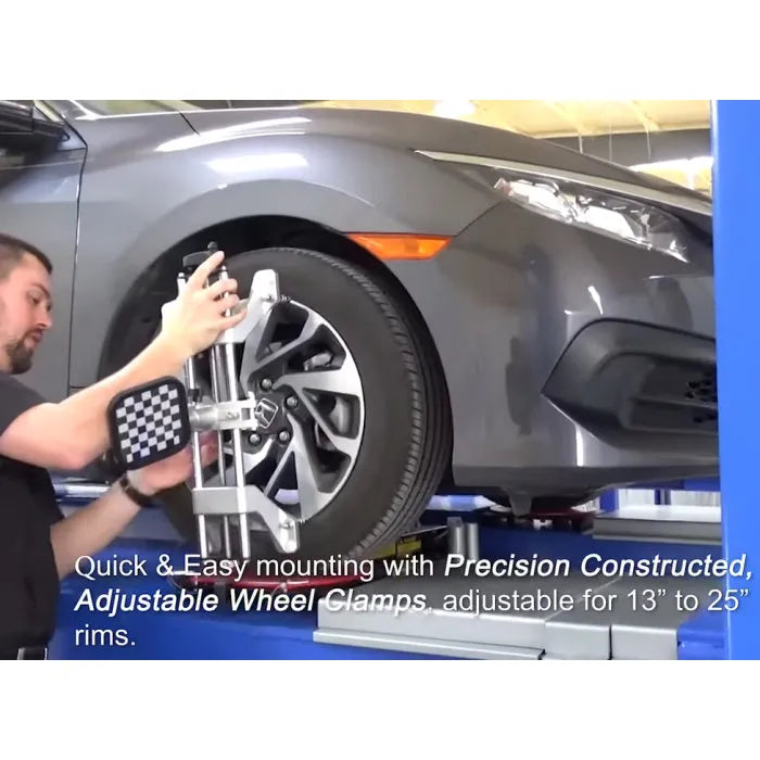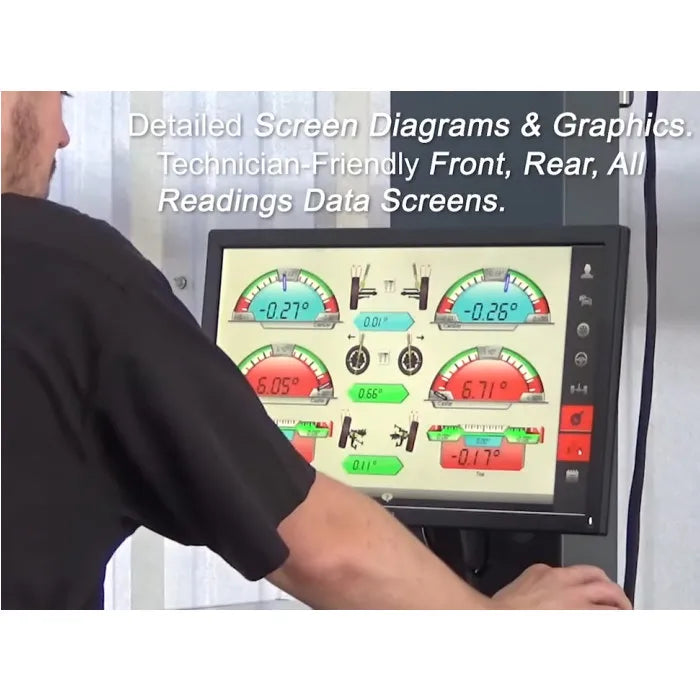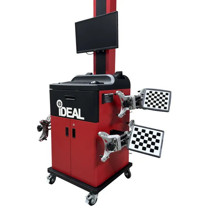 Experience the pinnacle of wheel alignment technology with the iDEAL IWA-60-2000T-K 3D iPRO Imaging Wheel Alignment System. The state-of-the-art aligner system is engineered for unparalleled precision, offering 0.01 degrees of alignment accuracy with real-time measurements to enhance your workshop's productivity. The iDEAL iPRO 3D Wheel Aligner's portability facilitates versatile applications across multiple bays, while the innovative 'Wide Scope' technology doubles the working height range compared to conventional 3D image wheel aligners. The system's four-point contact, 'self-centering' adjustable wheel clamps, and reversible studs, paired with robust magnesium targets, ensure rapid and accurate positioning for a wide array of tire rims, guaranteeing precise and secure wheel mounting. The intuitive software, complete with 3D vehicle chassis models, allows for immediate visualization of wheel alignment angles. The 21.5-inch wide-screen LCD monitor offers clear instructions and the choice of 2D or 3D graphic illustrations, supported by an integrated help system. Elevate your service offerings with the iDEAL iPRO 3D Wheel Aligner Multi-Bay System, the ultimate solution for precision, versatility, and ease of use in alignment technology.