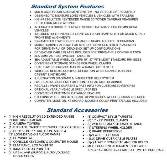 - Aligner Type: Heavy Duty 3D Multi-Axle Imaging