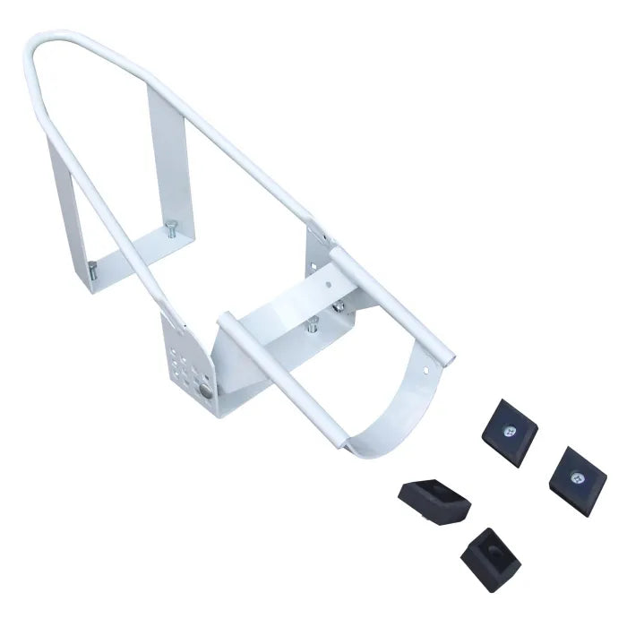 The iDEAL 2200IEH Series Self-Locking Cycle Wheel Chock is constructed of heavy-duty steel and mounts directly to your iDEAL 2200IEH Series Power Sport Lift or Front Extension Panel. Cycle Chock securely holds motorcyle in an upright and fixed position allowing for one person operation of the lift. Cycle Chock features adjustable 'self-locking' operation up to 6-1/2" and includes narrow tire adapters for tires 3-1/2" or narrower. All necessary hardware is included.