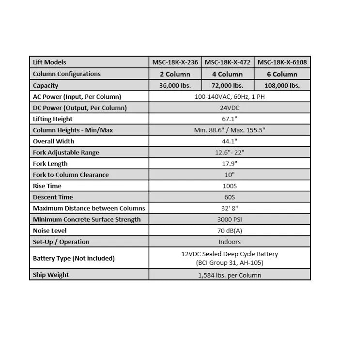 MSC-18K-X-6108 Mobile Column Lifts $8893 Off 8/29-12/31/25