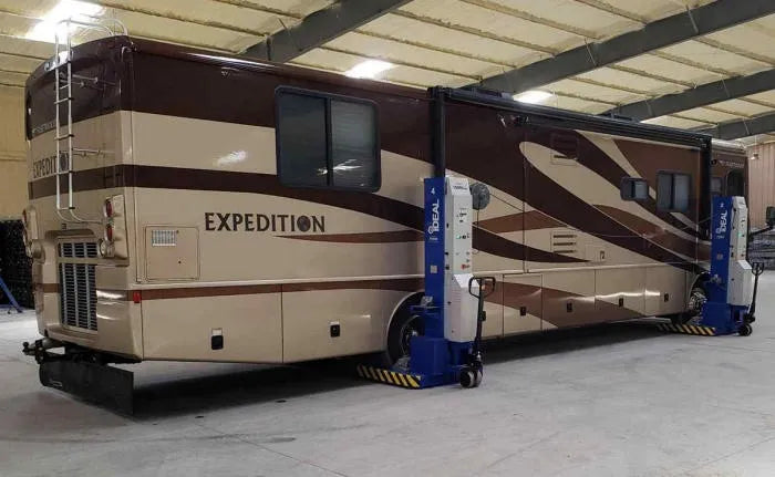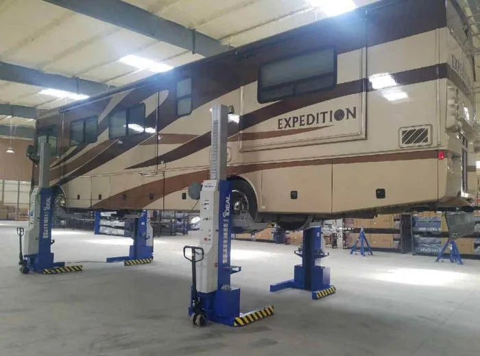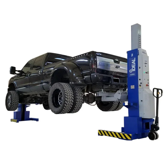 The iDEAL MSC-18K-X is available in sets of two, four and six columns to provide up to 108,000 lbs. of lifting capacity. The MSC-18K-X is designed to lift fire trucks, school buses and other large commercial vehicles by the wheels. Optional accessories provide the flexibility to lift pickup trucks and wheels free lifting for expanded service. Technicians realize improved productivity through safe, simple operation of the lift at each column using the well-designed control panel. The mobile design and quick setup of the MSC-18K-X allows technicians to easily transform a flat bay to a lift bay for improved use of shop space. The small footprint of the MSC-18K-X allows for storage without impacting valuable shop space. The iDEAL mobile column vehicle lift is ALI and ETL Certified.