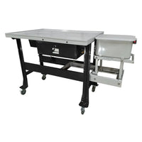 The iDEAL PTDT-1000 Premium Tear Down Table is a heavy-duty steel constructed shop tear down table with 1,000 lbs. support capacity. This shop tear down table has an easy bolt together assembly design and features a large 46.8" x 31.5" table top area, integrated table drain with catch basin, lockable storage drawer, and 4" swivel poly casters (2 locking, 2 fixed). The iDEAL PTDT-1000 Premium Tear Down Table is available in Blue or Black durable powder-coat finish.