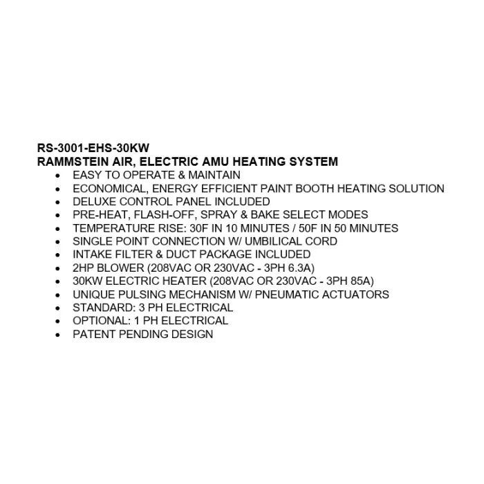 iDEAL RS-3001-EHS-30KW-1PH Electric Paint Booth Heating System