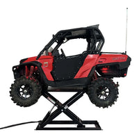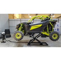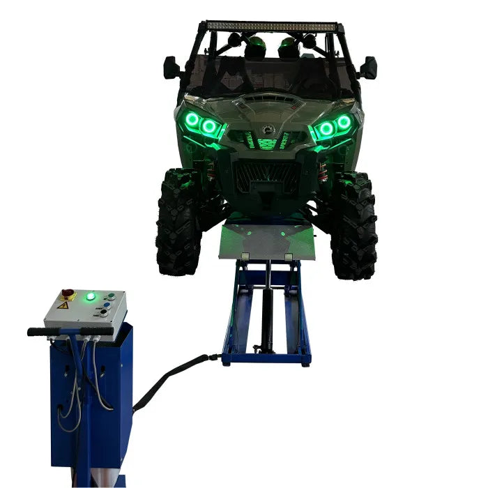 The iDEAL UF-2500EH-X Pro Series Frame Engaging UTV ATV Lift is able to lift the largest of UTVs with it's 2,500 lbs. capacity. The innovative 'frame-engaging' lift design allows for wheel and suspension service for the largest utility and all-terrain power sport vehicles.