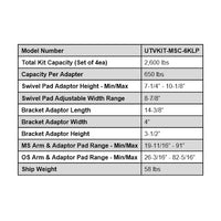 - MS Arm & Adapter Pad Range Min/Max: 19-11/16" - 91"