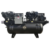 Industrial Gold duplex compressors are the ultimate in electrical efficiency. Designed for redundancy in all situations and built to deliver twice the power in the same amount of space as a typical compressors. Our duplex compressors deliver additional air when needed, are easy to service, maintain and operate. All units feature heavy-duty cast iron low-RPM pumps manufactured for durability and long life and heavy-duty components. This is the standard series model.