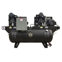 Industrial Gold duplex compressors are the ultimate in electrical efficiency. Designed for redundancy in all situations and built to deliver twice the power in the same amount of space as a typical compressors. Our duplex compressors deliver additional air when needed, are easy to service, maintain and operate. All units feature heavy-duty cast iron low-RPM pumps manufactured for durability and long life and heavy-duty components.