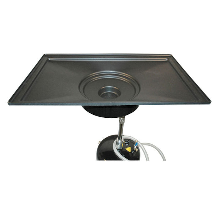 The JohnDow JD-2436 Big Mouth Transmission Drain Pan is designed for use with large transmissions drain pans.Have you ever raised a vehicle up on a car lift and rolled your under-hoist oil drain under it and then dropped the transmission pan, and had the fluid leak all over the place? You're not alone. Most of our customers have had the same thing happen to them. What to do? Until now, you had to improvise. Maybe use cardboard or aluminum foil or fashion some kind of plastic extension to your oil drain's funnel. Now you can just place this big mouth drain pan in the existing standard funnel of your oil drain. It will fit right in there. It covers a very large area and eliminates those annoying spills that always occur when you try to make due without it. Grooves along with the slight pitch will cause all the fluid to work it's way down to the drain pipe and then gravity will do the rest. Pan is resistant to impact and will hold up surprisingly well in a busy auto shop.