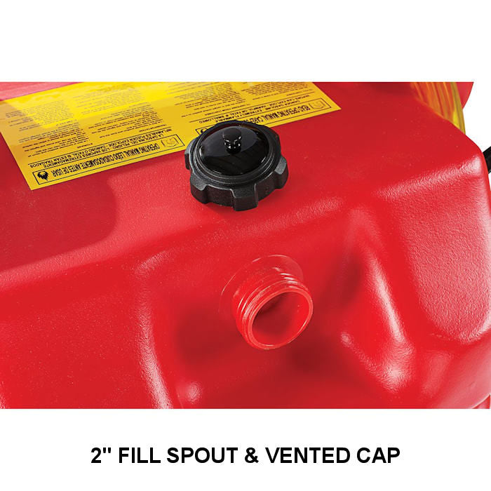 The 2" fill spout makes refilling easy. The vented fill cap keeps the tank closed and provides pressure relief when required.