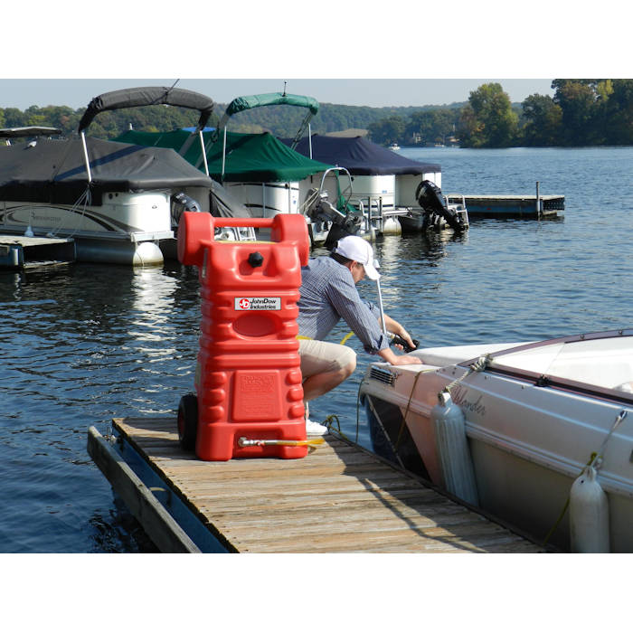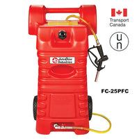 The JohnDow FC-25PFC 25-Gallon Portable Poly Gas Caddy provides a safe, effective and affordable method for storing and transferring fuel. This fuel caddy is UN/DOT and Transport Canada Approved and is ideal for automotive, landscape, marine, commercial and recreation applications. The blow-molded high-density polyethylene prevents corrosion and denting. Fuel dispenses using gravity flow, meaning the gas caddy MUST be at a higher level than the intended receptacle in order to dispense fuel (higher the gas caddy = better the flow). If gravity flow is not an option or feasible, you can upgrade to a heavy-duty, two-way rotary pump kit. The FC-PRK13 pump kit easily fills fuel-powered equipment when gravity flow isn't practical.