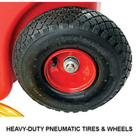 The heavy-duty pneumatic tires and steel wheels make maneuvering effortless on any surface.