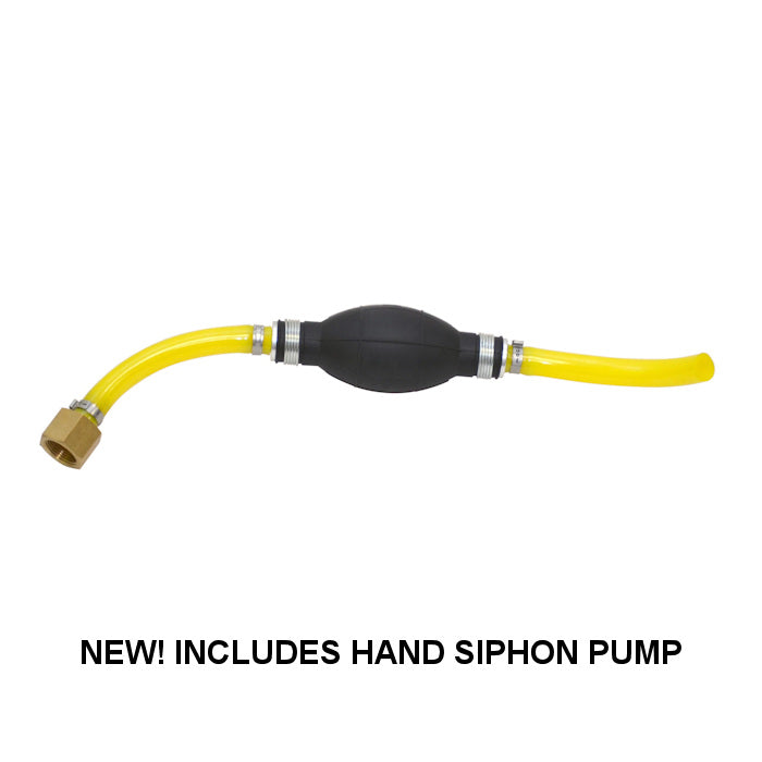 Remove the Dispensing Nozzle and this Hand Siphon Pump easily attaches to the 8' Dispensing Hose to make fueling on level ground possible when gravity flow isn't practical. Note: This is not a two-way pump.