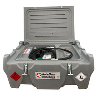 The JohnDow JDI-AFT58LP Low-Profile Diesel CarryTank allows you to easily transport and transfer diesel fuel in the back of a pickup truck. This Low-Profile Diesel Carrytank is specifically designed to fit flush within the bed of a pickup truck so you get the convenience of a portable refueling station for your farm, construction, recreation, industrial, and fleet locations. Simply hook this self-contained tank to a 12-volt power source and start pumping with the hose and automatic nozzle. Easily transport the Carrytank to a vehicle or leave it in a convenient spot onsite. Molded handles make it easy to lift and carry when the tank is empty. Integrated forklift pockets make it easy to lift and load when the tank is full.