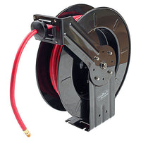 JohnDow Professional Retractable Hose Reels are designed for durable and dependable operation and dispensing of air, oil, antifreeze, and grease applications. Features include heavy-duty steel construction, corrosion resistant powder-coat finish, four-direction non-snag rollers, fully enclosed spring, full-flow swivel, and adjustable guide arm. Buy with confidence, JohnDow products are engineered and tested to provide the highest levels of quality, reliability and safety. Adjustable Guide Arm: Guide arm adjusts to nine different positions allowing for a variety of installation options.