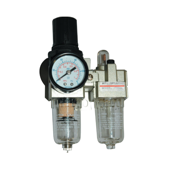 For long-term and trouble-free operation of the air/hydraulic pump, the air supply needs filtration for moisture. The FRL-1 is an all-in-one unit.