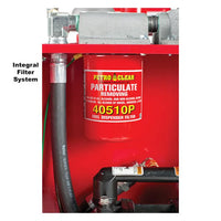 To protect vehicle fuel pumps from contamination, this gas caddy comes equipped with an in-line system that filters the fuel in both directions. A 10 micron filter is include and replacement filters are available in 1, 10 and 30 microns.