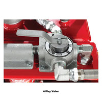 An integral 4-way valve clearly directs the flow of fuel to and from the vehicle.