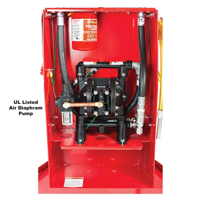 Designed for efficiency and productivity, this air diaphragm pump quickly and quietly pumps fuel to and from the vehicle by connecting shop air to the air throttle control on the top of the tank.