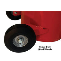 The 8" steel wheels easily carry a full fuel load of over 300 lbs.