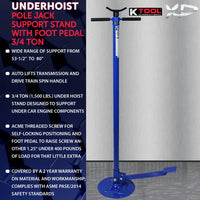 K Tool KTIXD61077 3/4 Ton Under Hoist Jack Stand with Pedal