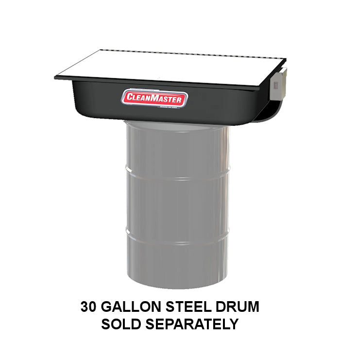 The CleanMaster CM230 is a premium 30 gallon drum-mounted solvent parts washer made from heavy-duty galvanized steel for long lasting durability. It has a durable, baked on powder coated epoxy finish and spring-loaded door closures with 165°F fusible link. It is equipped with a 'stay-put' flexible metal hose which directs and holds power rinse where you want it with flow-through brush. The CM230 is for use with petroleum solvents with a flash point over 104°F. The CM230 is NOT for use with chlorinated solvents.