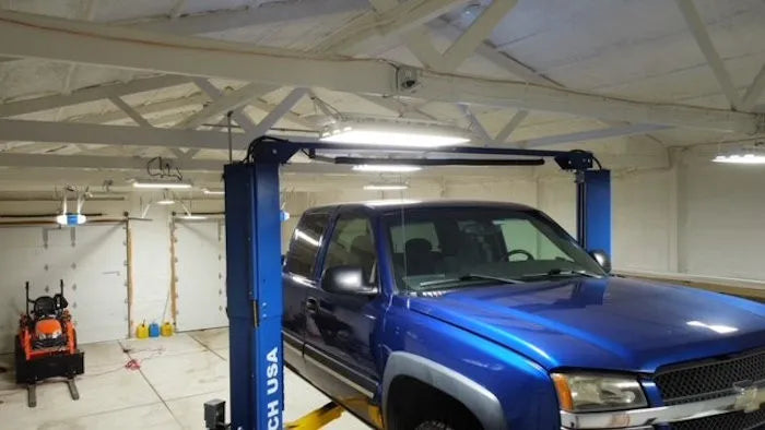 'Hi Brian, I hope all is well. Attached are some pics of the LaunchTech TLT210-XT. The directions were a little challenging at times, but it went together fine in a weekend. The pics are with my truck, the largest thing I own. I can’t complain one bit with the function of the lift. I was thrilled to see the amount of clearance between the top of the truck and the stop rail when fully lifted.'