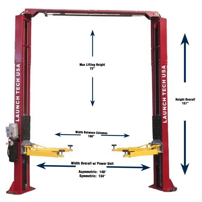 Economical, high quality, clear floor and floor plate chain-over lifts with dual point lock release, rubber door guards, steel pulleys, high strength equalization cables and double telescoping screw pads configured to accommodate the smallest cars to the SUVs and trucks. The TLT240SC clear floor lift is width adjustable and may be installed in a standard or rotated column configuration and comes with a one (1) year limited warranty. What if we told you you could have everything you want in a two post auto lift, at an affordable price? Well, now you finally can. Launch lifts are commercial grade two post lifts made for serious daily use, packed with all the premium features, yet are surprisingly affordable. The TLT240SC was originally used for another expensive premium name manufacturer, but is now exclusive to Launch. Check out all the features they offer and we're sure you'll agree. We're sure you'll agree, these are probably the best value on the market. Now, you may see these two post auto lifts advertised for slightly less around the internet, but bear in mind, we offer Free Shipping, which more than makes up for the price differential.