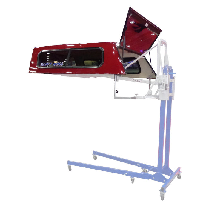 The Lift King LK4054 Topper Attachment is designed to provide a fast, easy, and a safe way for one person to perform the installation or removal of a fiberglass or aluminum pickup box topper. The Topper Attachment connects to the Main Component in the matter of seconds and only requires the tightening of four star knobs. One person can easily remove or install a pick-up topper with no human lifting. The topper can also be stored on the lift when not needed on the pick-up.