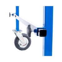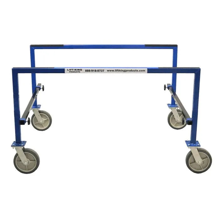 The Lift King LK4055 Box Dolly is a well-built dolly that holds pickup boxes of all sizes, including 8' dually boxes. The dolly is adjustable and comes with 8" rubber brake casters that make moving large pickup boxes around the shop or in and out of the paint booth an easy task. Unlike most dollies on the market, the Lift King Box Dolly can be broken down in less than a minute by loosening four star knobs and removing the two center bars. This dolly can be stored with little to no floor space needed. It can easily be hung on a wall mount or one of the Lift King Accessory Racks.